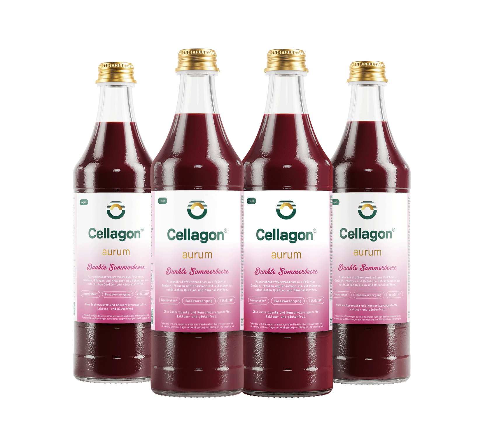 Dieses Set enthält 4× Cellagon aurum Dunkle Sommerbeere mit über 80 Zutaten aus Obst, Gemüse und Kräutern sowie 1× eine praktische Dosierhilfe. Das Set unseres beliebten flüssigen Mikronährstoffkonzentrats ist ideal für die 100-tägige Aufbauphase geeignet und lässt sich einfach in den Alltag integrieren.